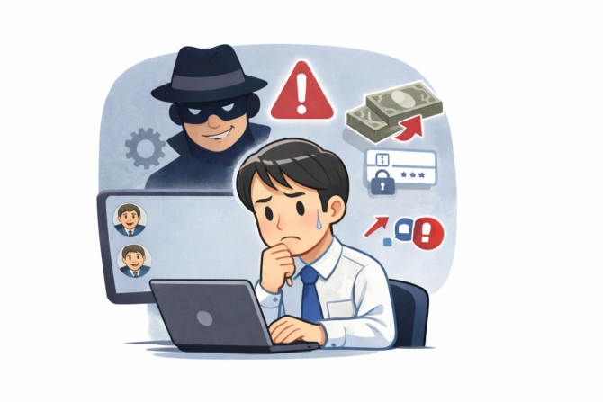 社長・役員・取引先などを名乗るメールやチャットが届き、「至急」「極秘」「今すぐ」など急がせて、送金や口座情報の提出、ID・パスワードの共有を誘導する詐欺です。